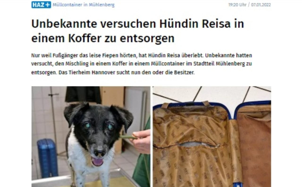 Cane chiuso in valigia e abbandonato in un cassonetto dei rifiuti: terribile vicenda in Germania, ad Hannover. L'animale è sopravvissuto e il proprietario è stato identificato