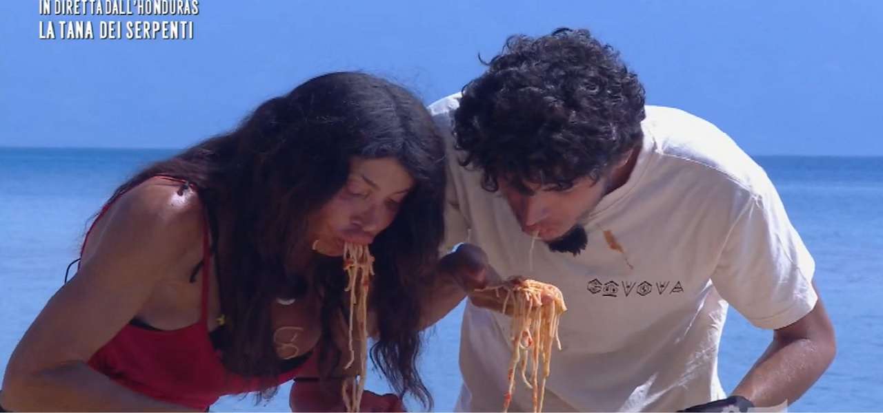 Carmen Di Pietro e Alessandro mangiano spaghetti senza permesso all’Isola dei Famosi: punizione in vista?