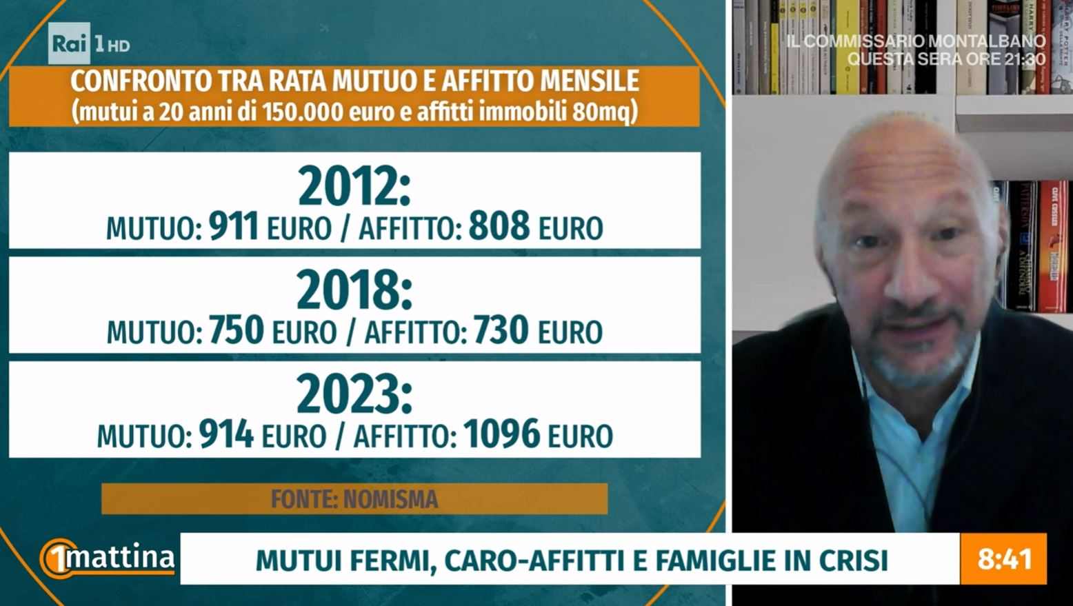 Si parla di caro mutui e caro affitti stamane negli studi di Uno Mattina e in collegamento vi era Roberto Anedda di Nomisma, che ha cercato di analizzare la situazione: “Gli stipendi sappiamo che da tempo faticano a salire se non di pochi punti percentuali, mentre vediamo come i costi che gravano sulle famiglie sono pesanti soprattutto su coloro che hanno redditi medio bassi, quindi fanno fatica per avere soldi per le spese necessarie”.