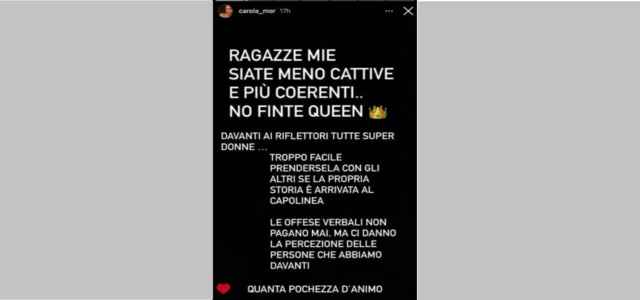 “Ragazze ma siate meno cattive e più coerenti. No finte queen. Davanti ai riflettori tutte super donne. Troppo facile prendersela con gli altri se la propria storia è arrivata al capolinea. Le offese verbali non pagano mai. Ma ci danno la percezione delle persone che abbiamo davanti. Quanta pochezza d’animo”, le parole della tentatrice.