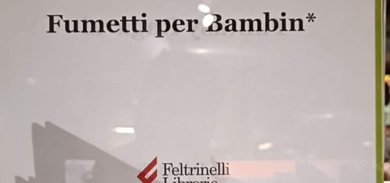 Caos per il cartello di Feltrinelli che espone i "Fumetti per Bambin*", utilizzando l'asterisco: secondo Libero si tratta di un tentativo per eliminare il tema della sessualità nei bambini