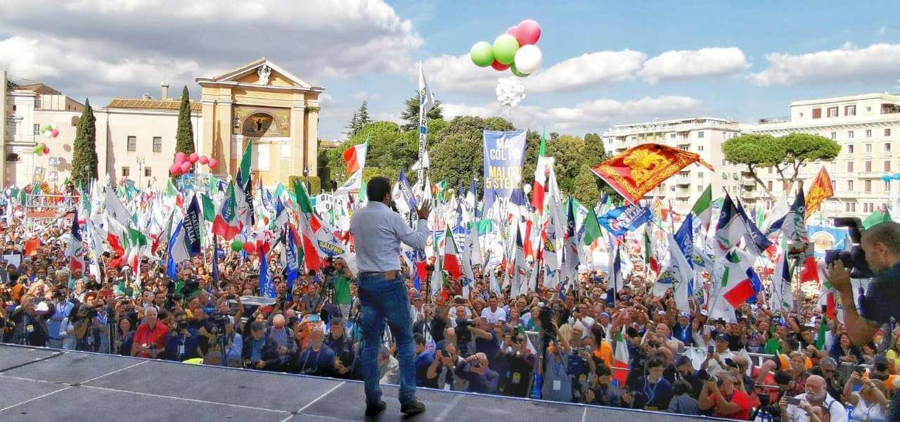 La manifestazione del centrodestra in piazza San Giovanni a Roma segna la nuova sfida di Salvini al governo Conte: popolo contro élite