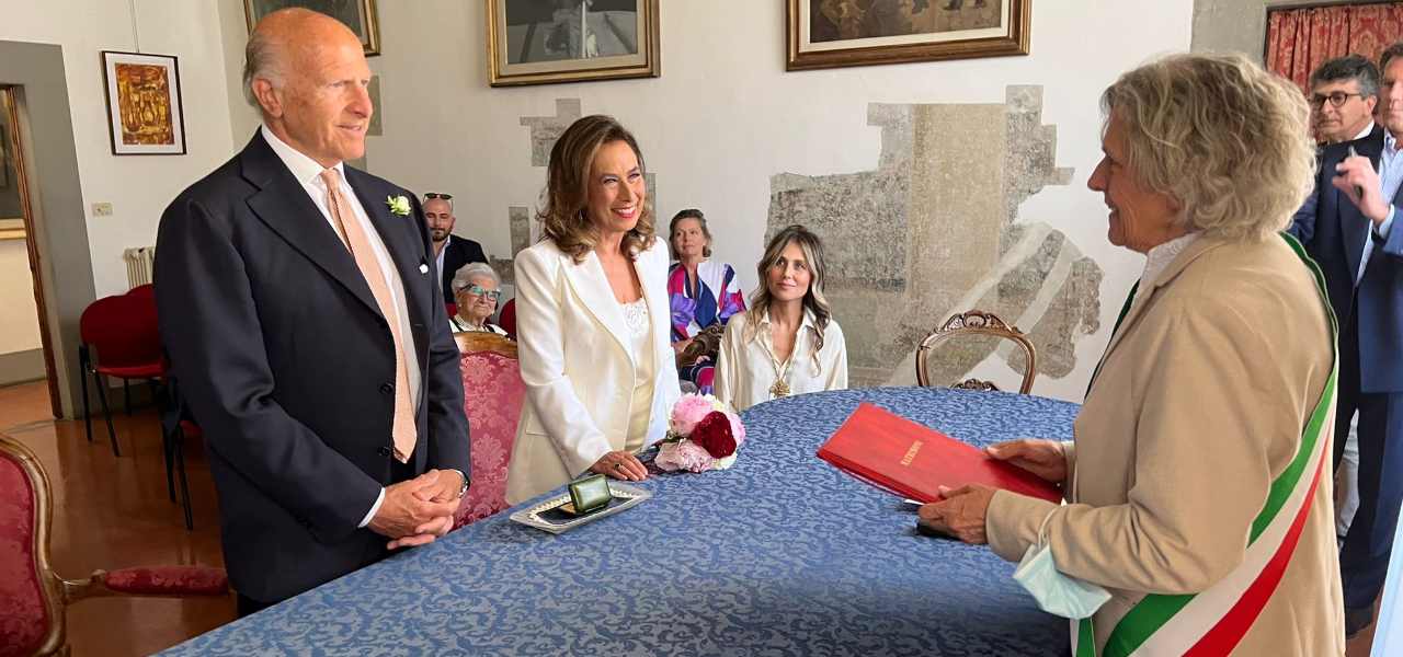 La cerimonia, che si è conclusa nel primo pomeriggio, ha visto tra i partecipanti anche il direttore del Tg5 Clemente Mimun, il principe Emanuele Filiberto, l’allenatore Cesare Prandelli, l’imprenditore fiorentino Mario Luca Giusti, il generale Leonardo Tricarico e il fotografo Massimo Sestini. Invece per la festa “vera e propria” bisognerà aspettare mercoledì, quando si terrà il ricevimento, organizzato alla Terrazza Borromini di Roma per un centinaio circa di ospiti.