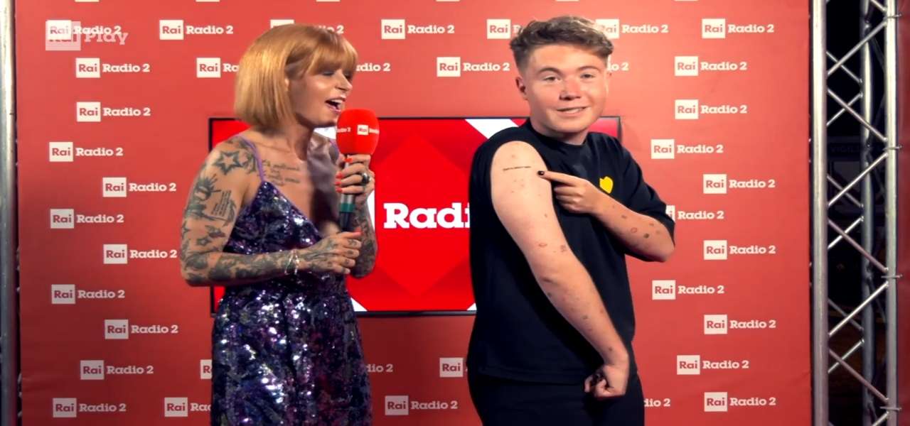 Alfa durante l'intervista con Radio 2 al Tim Summer Hits (Screenshot)