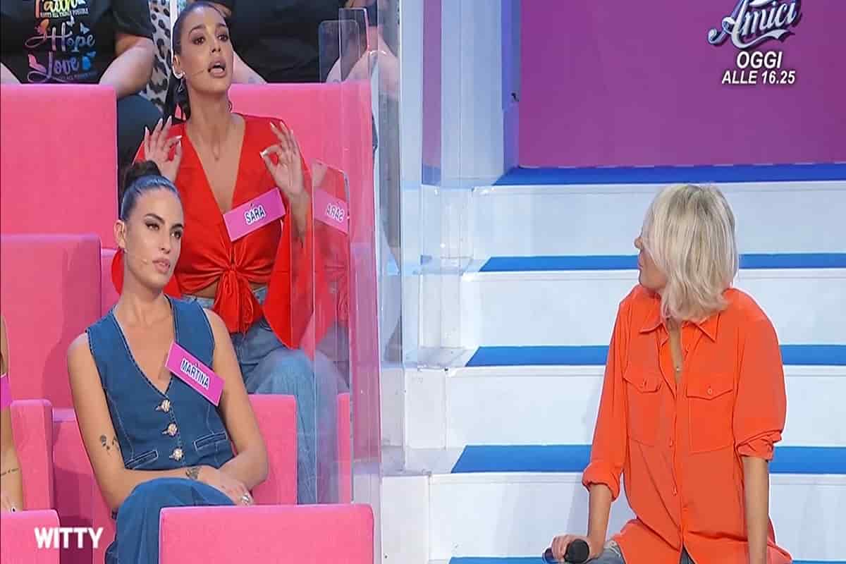 “Tu sei la mia più grande fan. Vedi tutto quello che pubblico su Instagram. Ti blocco”, sbotta Sara in studio mentre Martina resta calma al proprio posto. L’atteggiamento di Sara e il modo di fare schietto e diretto dell’atteggiamento conquista Maria De Filippi che non solo le lascia la parola ma sorride ogni volta che Sara si esprime.