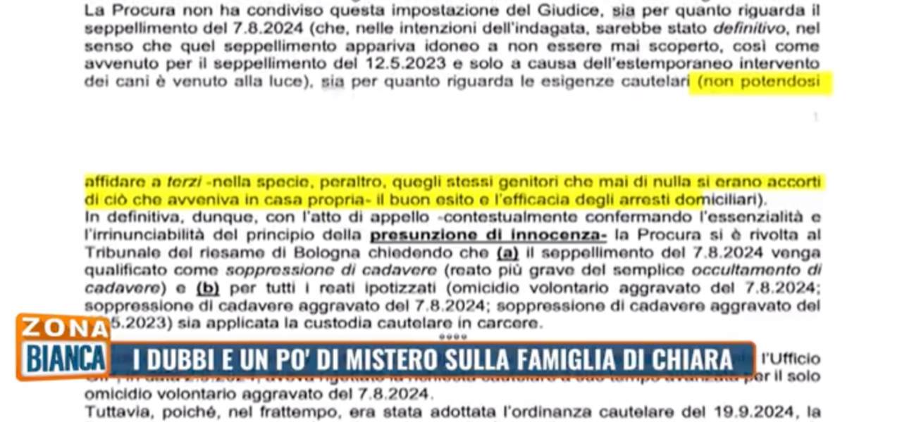 Lo rivela uno stralcio del ricorso del pm mostrato da Zona Bianca, da cui si evince che l’appello è stato motivato non solo con il concreto rischio di reiterazione del reato da parte della mamma 22enne, ma anche dell’inadeguatezza degli arresti domiciliari, in virtù del fatto che i due genitori non si erano resi conto delle due gravidanze. “Non sempre sono risultati presenti, viene lamentata un’emorragia e non hanno approfondito, non hanno indagato“, aveva fatto notare il procuratore capo Alfonso D’Avino in conferenza stampa.