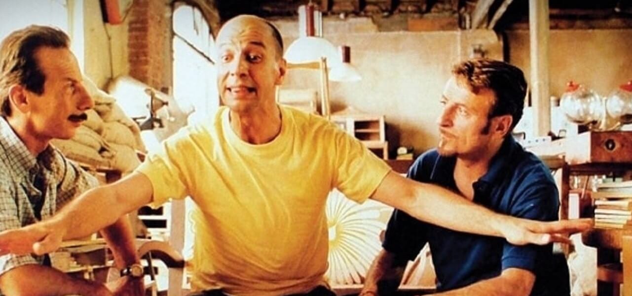 Al loro fianco l’immancabile compagna di tante avventure, Marina Massironi, che aveva già lavorato con loro in Tre uomini e una gamba (1997) e Così è la vita (1998).