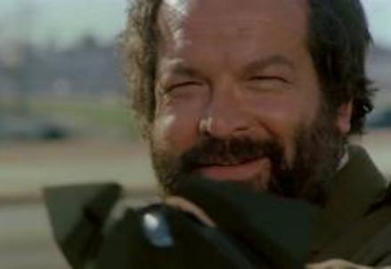Un altro film che ce lo ha fatto amare è stato il noto Altrimenti ci arrabbiamo, in cui c’è’ la scena della sfida in moto con tanto di musica western prima del duello tra Terence Hill e il capo dei cattivi; musica che cambia diventando allegra nel momento in cui entra Bud in sella a una moto con due ruote enormi (si venne a sapere che Bud non sapeva andare in moto e aveva voluto quelle mega ruote per avere più stabilità). Quella scena rimane un po’ lo stereotipo di quel che è stato Bud per noi: una ventata di allegria che irrompe e che fa volare via, letteralmente, le cose che non vanno.