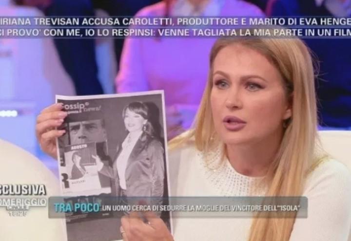 Ovviamente la moglie di Caroletti è andata su tutte le furie e in diretta tv a Pomeriggio 5 ha sfogato tutta la sua rabbia contro le pesanti accuse di Miriana Trevisan: «Hai detto una marea di bugie, ci sono testimoni, Massimiliano ha fatto causa subito. Se tu hai un po’ di onestà non dici mezza parola, alzi il telefono e dici chi è questa persona della Rai. Perché mettere una persona in mezzo a maniaci una persona che ti ha aiutato e fatto lavorare. Io da persona intelligente ho compreso, ma Tornatore pure è sposato. Come ti permetti di dire una cosa del genere? Non ci credo proprio». Oggi il ritorno a Domenica Live di Eva e la figlia Mercedesz Henger per difendere Caroletti, visto quanto scritto sui social in questi giorni dalla Trevisan, per nulla restia al confronto: «Caro @pomeriggio5 e @carmelitadurso sarà un piacere querelare @evahenger. Così ne parliamo in dibattimento pubblico». Sul suo blog personale poi vengono raccontate tutte le presunte bugie dette da Henger, Caroletti e dal programma di Barbara d’urto: con la denuncia «sarà un piacere raccontare tutto in un pubblico dibattimento. Pezzo per pezzo. Smontare le bugie di Henger e Caroletti (sul cui conto poi c’è un’intera bibliografia). Perché crescendo ho imparato a non fare più la parte della sordomuta. E, credetemi, questo vento di cambiamento è solo all’inizio». La replica spetta alle Henger, oggi cosa diranno?