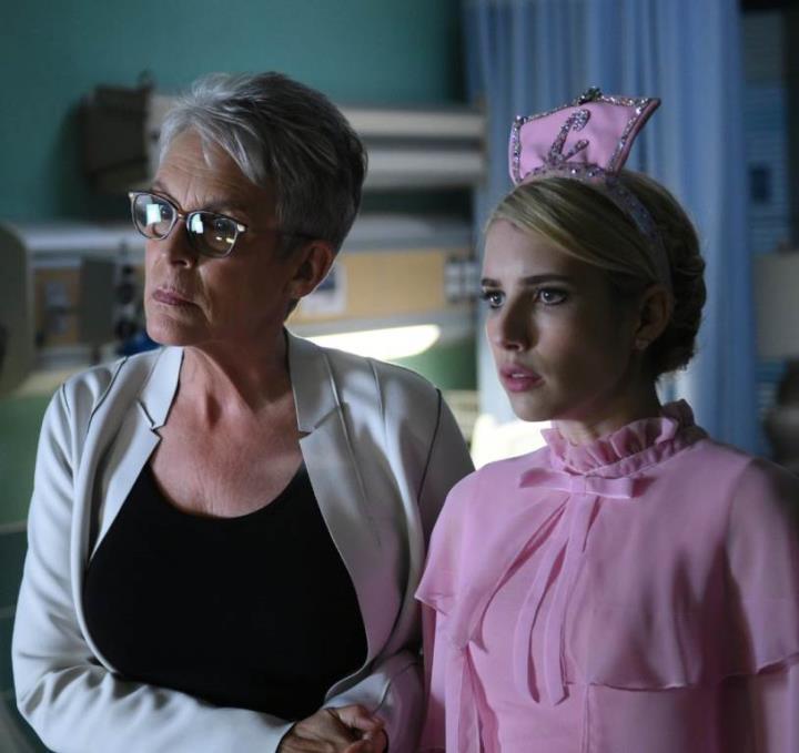 Nella prima serata di oggi, venerdì 24 marzo 2017, Fox trasmetterà un nuovo episodio di Scream Queens 2, in prima Tv assoluta. Sarà il nono, dal titolo “Regina della tv“. Prima di scoprire le anticipazioni, ecco dove siamo rimasti la settimana scorsa: Wes (Oliver Hudson) ritorna in città dopo molto tempo con un problema impotante allo stomaco ed ha bisogno di essere operato. Ovviamente la Munsch (Jamie Lee Curtis) non può che essere felice di rivedere l’ex amante, ma la presenza di Wes metterà in difficoltà tutto l’ospedale. Intanto, Zayday (Keke Palmer) continua a ricevere messaggi da Chamberlain (James Earl), che trova troppo insistenti e questo nonostante le piaccia. Organizzano comunque un modo per risalire all’ientità del Mostro Verde. Quella sera, Chanel (James Earl) e Brock (John Stamos) si danno alla pazza gioia, ma il loro incontro non è dei migliori. Il medico, infatti, sta pensando alla Munsch ed è solo così che riesce ad avere un’intimità con Chanel. Nel frattempo, Zayday rintraccia la persona che ha confezionato il costume del Mostro Verde, mentre Chanel impeisce a Chamberlain di continuare a fare lo stalker con l’amica. Gli sequestra quindi il cellulare e per questo il ragazzo non risponde agli sms successivi di Zayday. Quest’ultima, decide quindi di affrontare Jane (Trilby Glover) da sola riguardo al costume, minacciandola di andare alla Polizia. La donna rivela quindi di aver ordinato personalmente il costume, identico a quello del suo defunto marito e di aver incaricato in seguito il fratello di uccidere tutte le persone presenti nell’ospedale nell’86. Dopo aver confessato il proprio amore alla Munsch, Brock viene recuperato da Chanel e rimesso in riga. L’ex Rettrice si può dedicare quindi a Wes, ma vengono presi di mira dal Mostro Verde. La Munsch vorrebbe rimanere per combattere contro l’assassino, ma quando quest’ultimo fugge dalla finestra, conclude che il responsabile sia Brock: non sopporta infatti che siano ritornati insieme. Zayay invece si risveglia nel fondo di un pozzo verde, immobilizzata. Nel frattempo, Chamberlain trova degli indizi sul Mostro Verde fra gli scarti dell’ospedale riguardo all’intevento di Wes, mentre Brock, dopo aver giurato a Chanel di voler stare con lei per la vita, propone alla Munsch una cosa diversa. Le suggerisce infatti di tenere in ballo entrambe le storie, sia con Wes che con Chanel, in modo che nessuno dei due sospetti di nulla. Wes rivelerà in seguito a Chamberlain did essere il Perfido Verde e di aver voluto vendicare ciò che la Munsch e le Chanel hanno fatto a sua figlia. E’ stata infatti rinchiusa in un ospedale psichiatrico: ecco perché ha ingurgitato i capelli, per riuscire ad entrare nel CURE. Subito dopo, lo uccide pugnalandolo al ventre ed infine ascolta il messaggio che Zayday ha lasciato sulla sua segreteria telefonica.