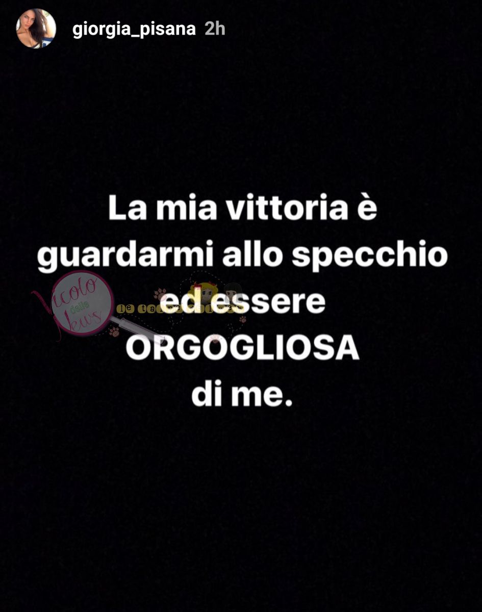Dopo la puntata, così come annunciato nel precedente focus, la Pisana ha avuto modo di interagire con i fan ma, anche tramite le Stories di Instagram ha voluto precisare il suo punto di vista: “La mia vittoria è guardarmi allo specchio ed essere orgogliosa di me”, ha scritto. Cliccate qui per visualizzare l’immagine. (Aggiornamento di Valentina Gambino)
