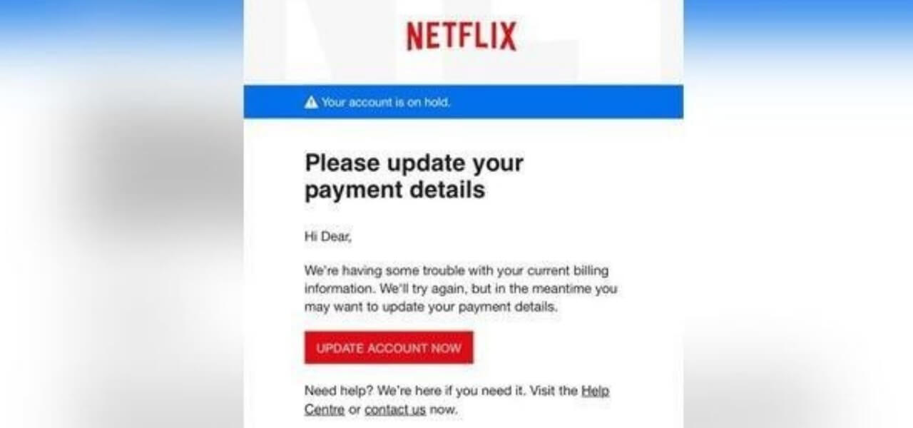 Il phishing nei confronti degli utenti Netflix nella maggior parte dei casi è così articolato: nelle e-mail si chiede agli utenti di cliccare su un link per aggiornare i propri metodi di pagamento, sostenendo che l’account è stato sospeso visto che il sistema “sta riscontrando dei disservizi con l’attuale metodo di pagamento”. Ovviamente si tratta di una truffa, tipica ad esempio delle comunicazioni bancarie – che non avvengono mai via e-mail – e l’unico rimedio per starne alla larga consiste nell’evitare di cliccare o seguire le istruzioni indicate dal messaggio in questione. Certo, può capitare di essere in dubbio sull’autenticità della comunicazione: in questo caso basta verificare l’indirizzo url al quale si verrebbe riportati, senza cliccare sul link ma semplicemente posizionandovi sopra il cursore (la normale “freccetta”). L’hub di sicurezza della piattaforma ha comunque fatto sapere che “Netflix non chiederà mai informazioni personali via e-mail“.
