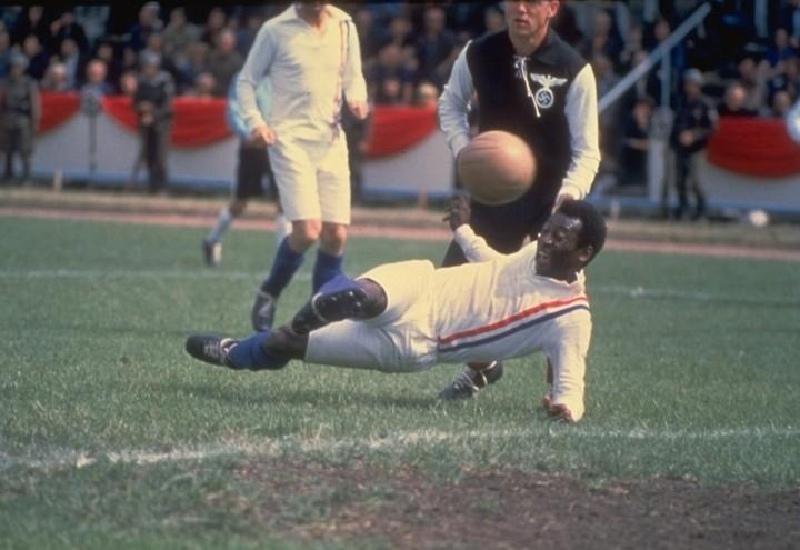 La partita si svolge a Parigi come evento mediatico e di propaganda. I tedeschi segnano a ripetizione, 4-0. L’arbitro ha spesso gli occhi chiusi, la Var non esiste, ma gli Alleati riescono a rimontare con un grande Pelé che gioca con un braccio aderente al corpo come Beckenbauer contro l’Italia nella mitica semifinale di Mexico ’70. Rambo-Stallone aveva la pretesa di segnare un gol, ma J. Huston lo esalta facendogli salvare la partita parando un rigore al 90°.