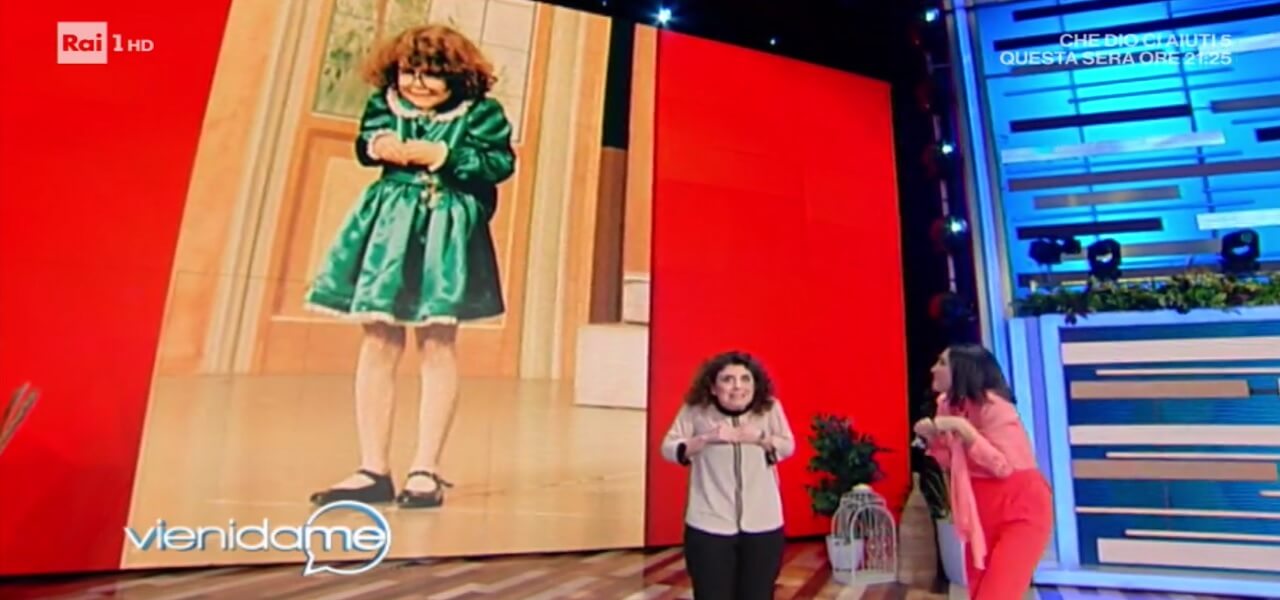 Dopo iricordi di Vittorio Cecchi Gori, Caterina Balivo ospita Morgana Giovannetti, a soli 6 anni, si fa notare come imitatrice nel programma Stasera mi butto. Il maestro Pingitore la nota e decide di trasformarla in una piccola star portandola al Bagaglino. “Io ho iniziato a fare le imitazioni all’asilo. Quando tornavo a casa facevo la camminata della maestra Anna e quindi ho iniziato da subito. Io ero in vacanza a Rimini e vedevo questo programma che era Stasera mi butto al cui interno c’era anche la gara dei bambini. Presi il numero di telefono e chiesi ai miei genitori di portarmi lì. Io arrivai al Grand Hotel di Rimini e vidi Pingitore che mi disse: ‘vediamo che cosa sai fare’. Lui rimase subito colpito e mi prese con lui”, ricorda Morgana che, nonostante il successo e la popolarità ha sempre avuto una vita normale come quella di tutti i bambini. “Mi rendeva felice e mi rende ancora felice fare quello che faccio a teatro. Con i miei compagni avevo un ottimo rapporto anche perchè quando io parlavo di quello che facevo sembrava tutto molto normale e in questo sono stati moto intelligenti i miei genitori perchè mi hanno sempre permesso di condurre una vita normale e a teatro portavo spesso con me quello che era il mio mondo. Mi sono sempre divertita tantissimo”, aggiunge ancora la Giovannetti.