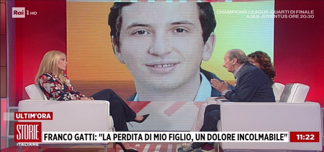 Eleonora Daniele, dopo il toccante racconto di Lory Del Santo, nel salotto di Storie Italiane, accoglie Franco Gatti, ex componente dei Ricchi e Poveri, e sua moglie Stefania che raccontano il dolore incolmabile per lamorte del figlio Alessio. Franco Gatti è un uomo ferito che non riesce a darsi pace per aver perso un figlio che oggi è diventato il suo angelo. Con la voce rotta dal dolore e dalla commozione, Franco spiega ad Eleonora Daniele di sentire accanto a sè sempre la presenza del figlio Alessio che gli lancia messaggi e segnali. “Un giorno ero nel programma di Francesca Fialdini e si parlava dei segnali che le persone scomparse lanciano ai propri cari e quando sono uscito dallo studio ho trovato una piuma che sarebbe un segnale della loro presenza. Io e tutte le persone che erano con me siamo rimasti stupiti”, racconta Franco.