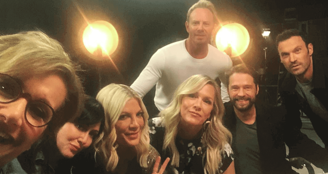 Gabrielle Carteris, tramite il suo profilo ufficiale di Instagram, ha condiviso uno scatto sul set che sta già facendo impazzire letteralmente gli estimatori della serie. Gli attori che insieme a lei daranno vita al reboot di Beverly Hills 90210, non vedevano l’ora di potersi riunione anche se, si rendono perfettamente conto della profonda mancanza che genera Luke Perry. A metà tra un documentario e un revival, i protagonisti saranno alle prese con il ritorno sul set a vent’anni dalla loro ultima volta. I nuovi episodi verranno trasmessi sul canale Fox, per ritrovare in scena: Brenda Walsh ( Shannen Doherty), Donna Martin (Tori Spelling), Kelly Taylor (Jennie Garth), Steve Sanders (Ian Ziering), Brandon Walsh (Jason Priestley) e David Silver (Brian Austin Green). Oltre allo scatto postato dall’attrice, grande interesse aveva suscitato anche la prima sceneggiatura condivisa su Instagram da Ian Ziering: “Penso che voi già sappiate come vanno queste cose”, ha scritto riferendosi al tema originale dello show.