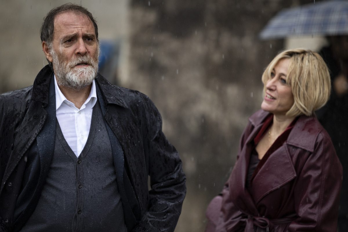 Il disincantato e burbero Valerio Mastrandea, che lo impersona in modo decisamente efficace in tutto il suo enigmatico isolamento, ci immerge in una tristezza profonda, illuminata solo dagli scarni ma affettuosi messaggi mattutini di saluto sul cellulare, che rivolge al figlio adolescente Matteo, che non risponde mai. Altri contatti diretti, come con un tecnico per le riparazioni minime, necessarie all’abitazione malandata, o con il postino che gli porta misteriose raccomandate, vengono accuratamente evitati da quest’uomo, che sembra voglia solo nascondersi e rimanere solo e incupito nel suo inaccessibile silenzio.
