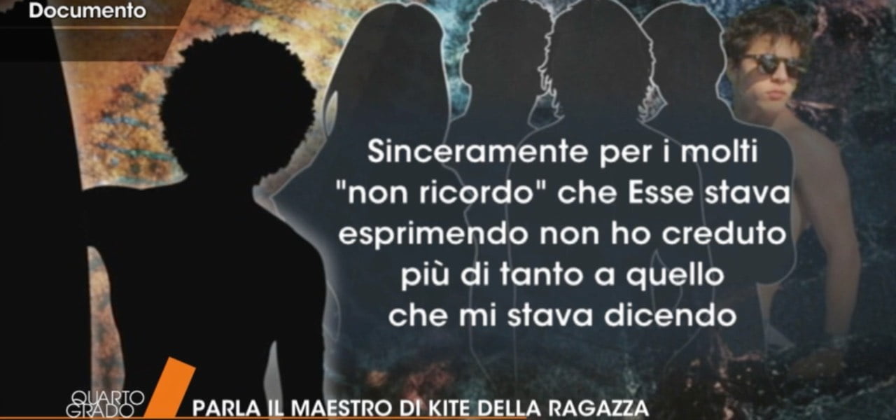 Il maestro di kitesurf allora si è preoccupato e ha chiesto alla ragazza cosa fosse successo. A quel punto, in riferimento alla serata nella villa di Ciro Grillo, lei ha risposto: «Eh, è che è successo di nuovo». Marco ha subito collegato ciò ad una confidenza che la ragazza gli aveva fatto l’anno prima, cioè «che era stata abusata dal suo migliore amico». A questo punto l’istruttore ha raccontato ai carabinieri che la ragazza gli aveva raccontato che un amico d’infanzia l’aveva costretta ad un rapporto sessuale in Norvegia, episodio che la ragazza non aveva denunciato e riguardo il quale agli inquirenti ha detto: «In passato, quando ero in Norvegia, c’era stato un flirt con un mio amico, con il quale condividevo la tenda in un camping scolastico. Ricordo che mi ero addormentata e lui mi aveva penetrata». Quando l’istruttore le ha chiesto a cosa facesse riferimento, lei avrebbe risposto «in maniera a mio avviso piuttosto confusa e contraddittoria, di essere uscita in un locale, non ricordo se mi abbia detto quale, e di aver conosciuto dei ragazzi, tipo 5 o forse 7, non lo ricordava perché aveva bevuto. Alla fine questi ragazzi, forse 4, avevano abusato sessualmente di lei». Marco ha parlato ai carabinieri di un racconto «alquanto confusionario», inoltre la giovane «sosteneva sempre di non ricordare bene l’accaduto perché era molto ubriaca e non sapeva neanche se fosse accaduto di sera o di mattina». Quindi, ha spiegato la reazione che ebbe: «Sinceramente, per i molti non ricordo che Silvia stava esprimendo, non ho creduto più di tanto a quello che mi stava dicendo e le ho detto che non sapevo cosa consigliarle». D’altra parte, le ha fatto notare una cosa, cioè «che la cosa da lei raccontata era molto grave e il fatto che fosse stata ubriaca e non ricordasse i particolari non andava certo a suo favore in caso di denuncia e poteva andare incontro a conseguenze».