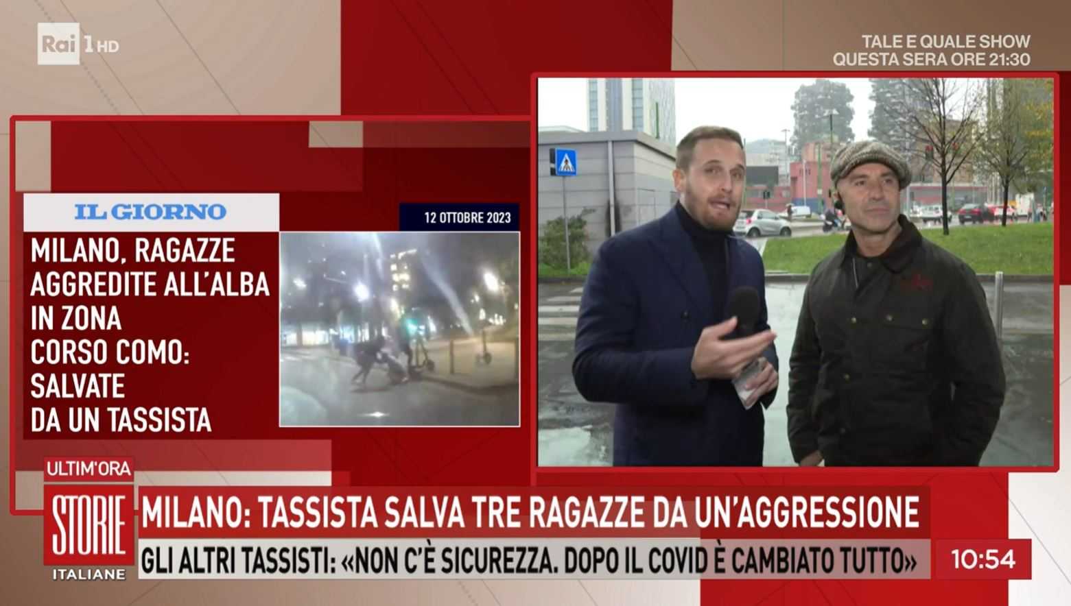 A Storie Italiane il caso del tassista di Milano che ha tratto in salvo tre ragazze viste in difficoltà. Il programma di Rai Uno ha avuto lo stesso tassista, Claudio Gioia, in collegamento, che ripercorso i fatti di quella sera: “Appena vedo queste ragazze che attraversano la carreggiata in maniera frettolosa vedo che sono seguite da un uomo, chiedo se andava tutto bene e le ho sentite preoccupate. Io nel frattempo avevo anche due clienti, ho detto alle ragazze di salire in auto e nel frattempo ci hanno raggiunto altri due personaggi, allora ho forzato le ragazze, sono partito in fretta e uno dei personaggi ha cercato di forzare la porta per salire in auto”.