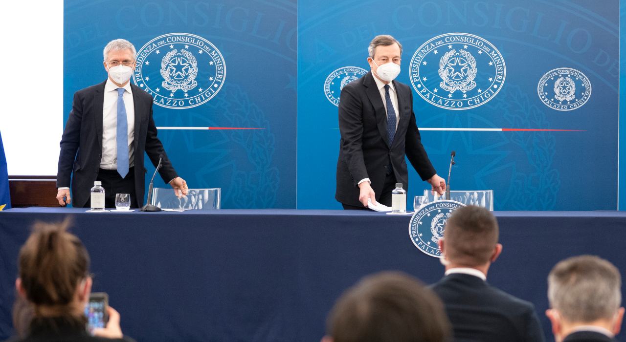 Presidente Mario Draghi e Ministro Daniele Franco (LaPresse, 2021)