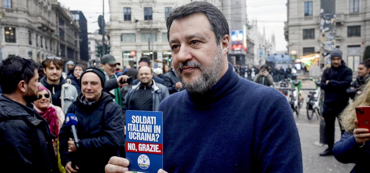 Matteo Salvini, leader Lega in piazza contro il piano di invio soldati UE in Ucraina (ANSA 2025, Mourad Balti Touati)
