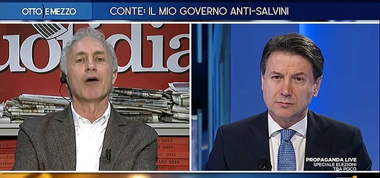 Marco Travaglio e Giuseppe Conte (video Otto e Mezzo del 2020)