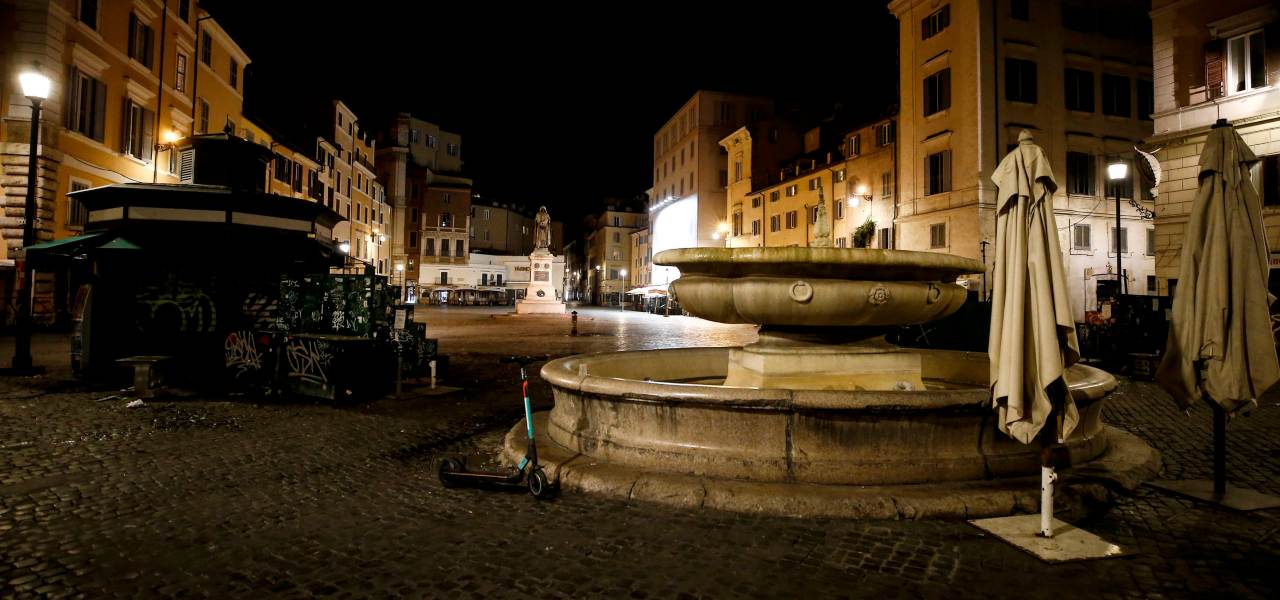 Coprifuoco a Roma: piazza Campo de Fiori deserta (LaPresse, 2021)