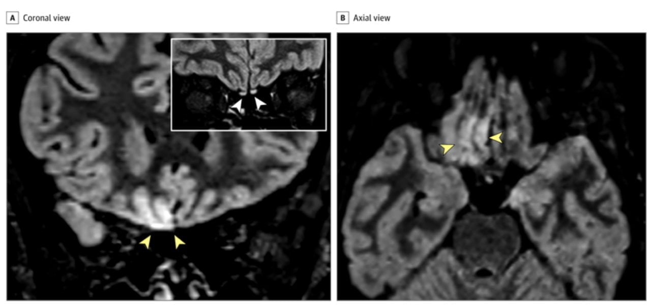 Un occhio non esperto fatica a scorgere questi cambiamenti, ma gli esperti li hanno subito individuati nella risonanza magnetica di una radiologa 25enne. La giovane era in buona salute fino a quando nel suo ospedale non sono arrivati pazienti affetti da coronavirus. Per un giorno l’operatrice sanitaria ha avuto tosse secca, poi è sparita. Poi però non è riuscita a percepire alcun odore, inoltre tutto quello che mangiava o beveva aveva un sapore strano. Tutto ciò pur non avendo sviluppato febbre. Gli esami al torace non hanno evidenziato problemi tre giorni dopo l’alterazione dell’olfatto, quindi i medici hanno eseguito la risonanza magnetica al cervello, trovando alterazioni in due aeree: lobo frontale e bulbi olfattivi. Dopo 28 giorni, è stata eseguita un’altra risonanza che ha invece mostrato come il cervello tornava alle condizioni precedenti, anche se i bulbi olfattivi apparivano leggermente infiammati. «In base ai risultati, possiamo ipotizzare che il coronavirus possa invadere il cervello attraverso la via olfattiva e causare una disfunzione», hanno scritto gli autori dello studio.
