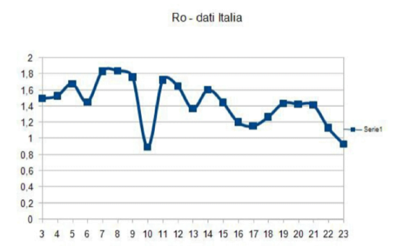 Vi chiederete: ma com’è possibile tutto ciò dopo tutte le misure drastiche adottate? Esistono due tipi di risposte. La prima è la conferma assoluta che il timing e la fermezza nelle decisioni è la variabile strategica per eccellenza. La seconda è il tempo che deve intercorrere tra causa ed effetto. La dimostrazione dell’efficacia (sebbene con notevole ritardo rispetto a quanto sarebbe stato possibile fare) delle misure intraprese è nel grafico che segue, che traccia il trend di Ro nel mese di marzo e che negli ultimi due giorni fa (finalmente) registrare lo sfondamento del tetto del valore uno, soglia materiale e psicologica per l’inizio di un percorso di inversione di tendenza della curva gaussiana dei contagi.