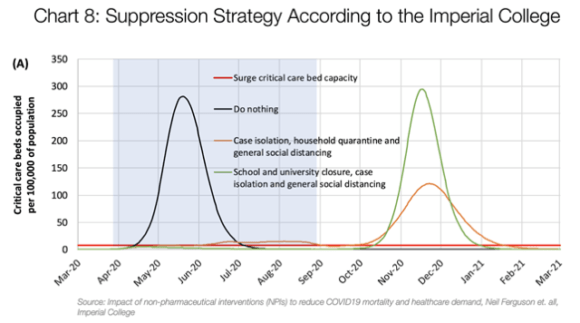 Un recente studio dell’Imperial College of London ha tuttavia messo in discussione la reale efficacia della Soppressione, evidenziando gravi limiti della strategia afferenti la durata del blocco per un tempo troppo lungo e i danni conseguenti per il sistema sociale ed economico cui si aggiunge (e questa è la variabile maggiormente negativa) un’inevitabile seconda ondata di virus al primo allentamento delle misure di allontanamento sociale, con un’amplificazione dei danni collaterali per un tempo difficile da calcolare.