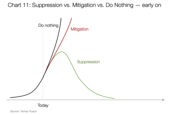 Ecco che emerge dunque un elemento nuovo nell’adozione di strategie di Soppressione: il tempo che si guadagna deve essere usato dalle istituzioni per intervenire in maniera sistematica sulla popolazione al fine di isolare gli infetti dai potenziali infetti e soprattutto dai sani. E prima lo si fa più in fretta arriveranno i risultati.