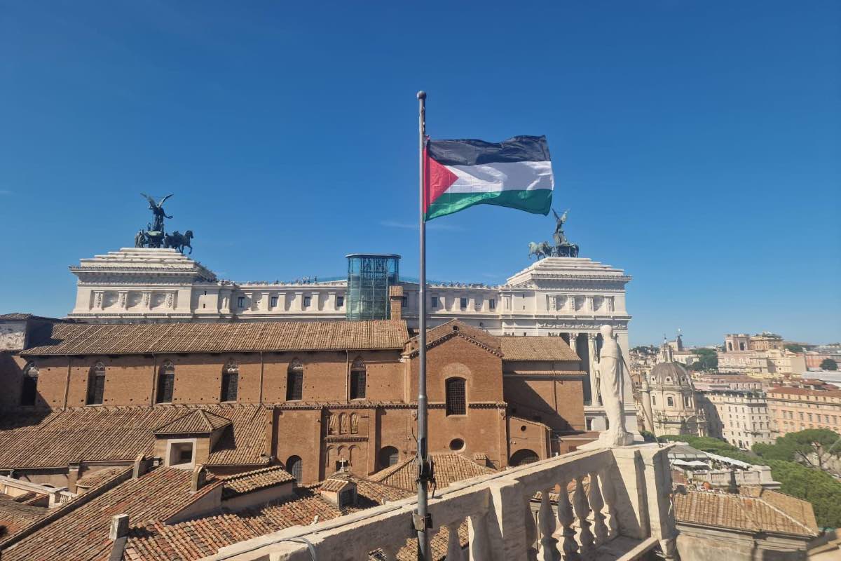 La bandiera della Palestina sventola su Palazzo Senatorio in Campidoglio, Roma 18 settembre 2025. ANSA (NPK)