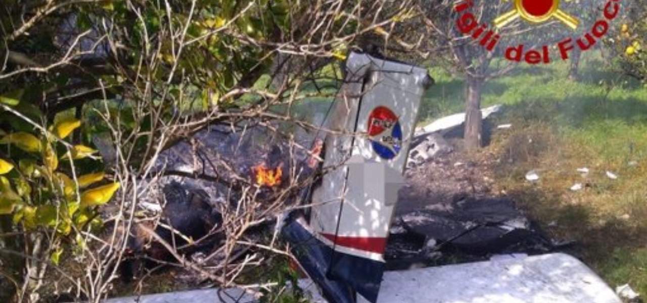 Cosenza, un aereo ultraleggero è precpitato in località Cassano allo Jonio, causando due vittime: sembra che il velivolo avesse un guasto al motore