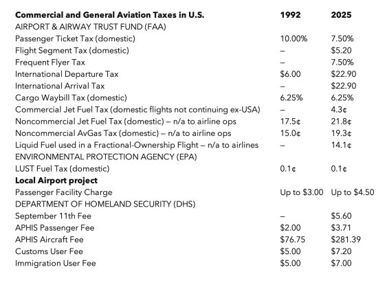 Negli Stati Uniti, il sistema di tassazione del trasporto aereo comprende diversi tipi di tasse e commissioni imposte sia a livello federale che locale, contribuendo al finanziamento del funzionamento, del miglioramento, della sicurezza e delle iniziative ambientali del sistema di trasporto aereo.