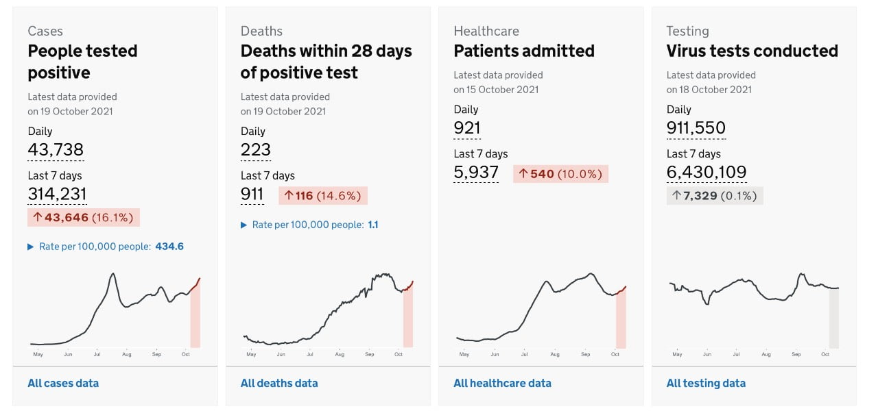 Il crescente numero di casi di coronavirus e la nuova risalita di morti per Covid preoccupano il primo ministro britannico Boris Johnson, il quale prevede un inverno molto difficile per il servizio sanitario nazionale. “Stiamo iniziando a vedere indicazioni che i tassi di ospedalizzazione e di morte stanno aumentando”, ha dichiarato il portavoce ufficiale Max Blain ai giornalisti. Quindi, ha assicurato che stanno monitorando in maniera molto attenta i tassi dei casi in aumento. Oltre a riportare 223 morti a 28 giorni dalla diagnosi di Covid, ci sono 921 persone ricoverate in Uk, un numero che non aumentava dalla fine di settembre.