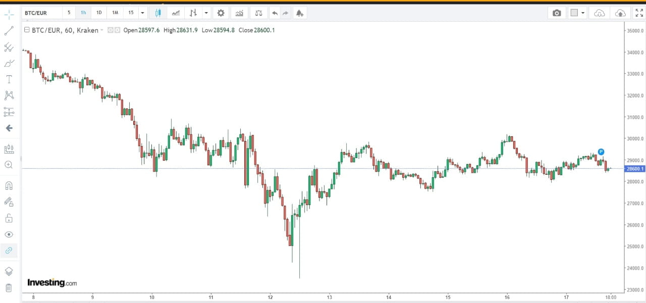 Le criptovalute nella giornata di oggi hanno subito un leggero incremento rispetto alla giornata di ieri, benché il grafico a timeframe orario del Bitcoin nel mercato spot dell’euro, segni una fase rialzista nonostante un ritracciamento fino a quota 28471 euro. Tutto il mercato ha avuto un rialzo minimo del +1,47 %.