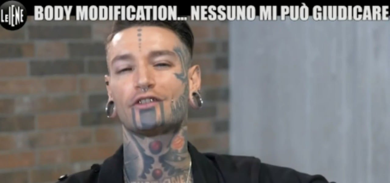 Un viaggio da non perdere quello de Le Iene Show in onda oggi su Italia Uno: Andrea Agresti parlerà infatti di “body modification“, la pratica che consiste nel cambiarsi i connotati senza alcuna ragione medica. In questo senso Cristian Mignemi, modello anche noto con il soprannome di “Ombra“, è un vero e proprio esperto in materia. Non dovete infatti pensare ad interventi di chirurgia routinari: rifarsi il senso? Optare per un lifting? Roba da pivelli. C’è chi come Cristian “Ombra”, infatti, ha deciso di andare oltre, molto oltre. Scommettiamo che quando lo saprete vi usciranno gli occhi fuori dalle orbite. Ecco, gli occhi, appunto: se osservate bene il suo sguardo vi renderete conto che non è poi così “normale”. Sì, perché Cristian in qualità di tatoo model, ha deciso di tatuarsi le pupille…