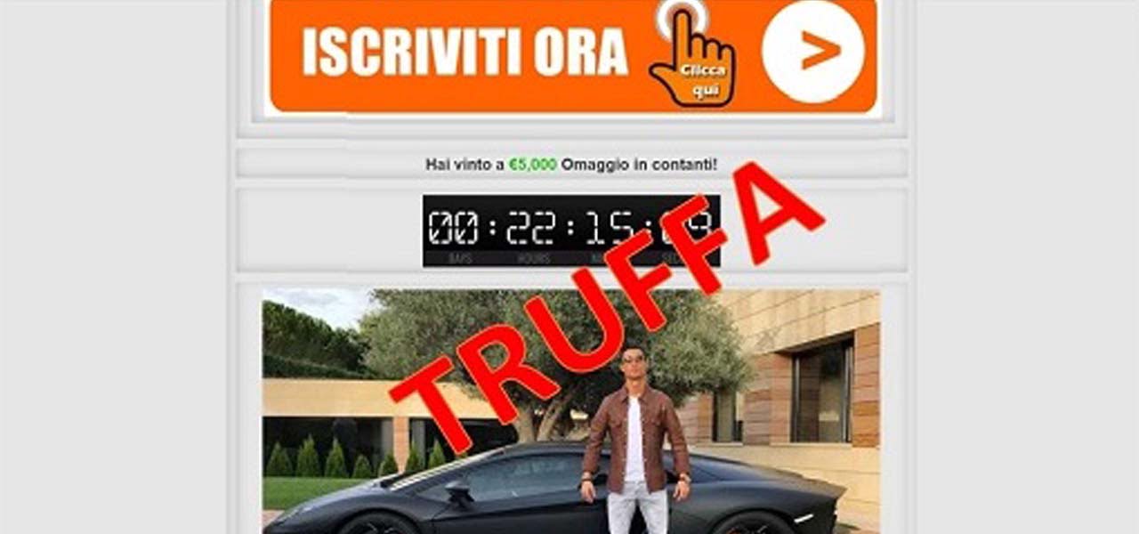 Non si placano i tentativi di truffa online messi in atto facendo leva sulla credibilità dei malcapitati utenti. L’ultimo prontamente smascherato e segnalato dalla polizia postale vede protagonista il calciatore Cristiano Ronaldo, la cui immagine è stata usata nel tentativo di truffare utenti sul web con un finto concorso. Usando in maniera illecita l’immagine del calciatore portoghese, attaccante della Juventus, dei cyber criminali avrebbero realizzato una falsa pagina web a lui attribuita nella quale veniva pubblicizzata una presunta vincita da 5000 euro. Ovviamente per poter entrare in possesso del cospicuo denaro era necessario registrarsi inserendo i propri dati, compresa la carta di credito. A quel punto la truffa andava in porto a scapito del malcapitato utente che, in tempi di crisi come quelli che stiamo vivendo avrebbe accolto di buon grado l’interessante vincita.