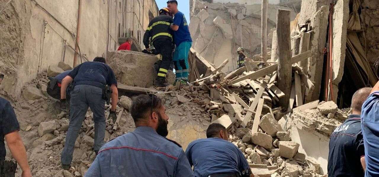 Torre del Greco, palazzina crolla in pieno centro, su Corso Umberto. Soccorse cinque persone ferite, delle quali 3 estratte dalle macerie, mentre la Procura indaga le cause del cedimento
