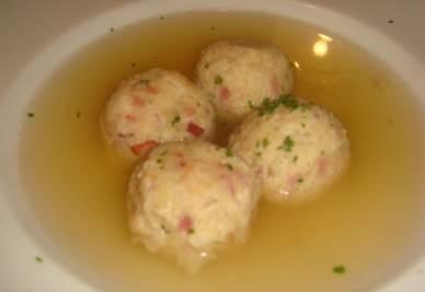 Bagnate il pane con il latte. In una padella fate sciogliere il burro, aggiungete la cipolla e il grasso dello speck. Quando il grasso si è sciolto, aggiungete il soffritto al pane, mescolate, e aggiungete ancora il salame e lo speck tagliati a piccoli quadrati, metà dell’erba cipollina, le uova intere, e mescolate il tutto. Quando è abbastanza amalgamato aggiungete tre quarti della farina. Il pane deve risultare completamente ammorbidito e l’impasto omogeneo. Aggiungete il resto della farina e con l’aiuto delle mani formate delle palline, della dimensione di una grossa noce, che cuocerete in acqua bollente. Appena salgono in superficie vanno colati, messi in un piatto fondo e serviti con brodo di carne, erba cipollina e piccole stelline di carota.