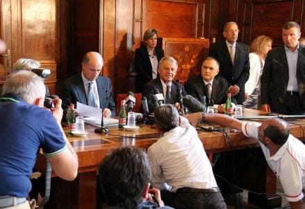 Il vertice Ilva con i ministri Corrado Passera e Corrado Clini (InfoPhoto)