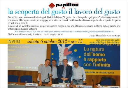 Sull'onda dell'incontro avvenuto al Meeting di Rimini, dal titolo "Il gusto che ci interpella ogni giorno", PAOLO MASSOBRIO ne presenta uno nuovo che avrà luogo sabato 6 ottobre a Milano