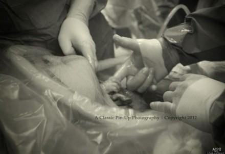 è bella questa foto. Un colpo di fortuna, dicono i più, l’attimo fuggente colto in un click dall’obiettivo padre, quasi un salvataggio dal ventre della madre. È bello il bianco&nero, perché non si nota il sangue, la ferita aperta è edulcorata, un po’ sbiadita in un non-colore. Non è così importante poi sapere il nome della bimba (Nevaeh, statunitense) ma colpisce che sia stato proprio il papà a farla, presente all’intervento, a quanto pare su invito dello stesso medico. Ci dicono sia stata la mamma invece, a volerla pubblicare, a farla circolare come un seme felice.