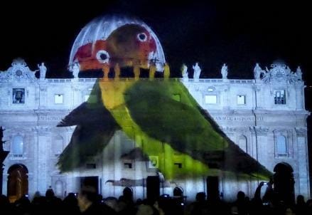 Le ultime sparate riguardano lo show multimediale proiettato sulla facciata di San Pietro la sera dell’8 dicembre. I pretesti che hanno fatto levare gli scudi sono principalmente due: uno, è stato oltraggioso e financo blasfemo usare il tempio della cristianità per proiettare figure di animali e, due, fra gli sponsor dell’evento c’erano nomi e sigle per nulla raccomandabili, che con la destra ringraziano il Papa per quello che fa e con la sinistra fanno cose immonde.