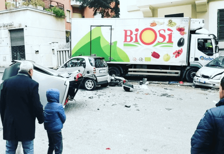 Un incidente pazzesco e purtroppo dall’esito drammatico ha colpito questa mattina il quartiere di Roma della Balduina: un camion-frigo della Daf guidato da un italiano di 53enne residente a Frosinone ha di colpo investito 17 auto parcheggiate in via Marziale e finendo la propria corsa folle contro l’ultima auto della fila di parcheggi presenti a bordo strada. Il motivo originario, riporta Il Messaggero, sarebbe un malore avvenuto di colpo per il povero camionista che ha perso così il controllo dell’autocarro investendo tutto quanto incontrava sulla propria strada: per fortuna alle ore 5 in Via Marziale, miracolosamente, non v’era nessuno per strada che è stato coinvolto o investito. Hanno però visto in tanti la dinamica dell’incidente e raccontato nel dettaglio alla Polizia Municipale arrivata subito sul posto: auto, scooter, bidoni della spazzatura e marciapiede, tutto è stato travolto creando panico in chi ha subito pensato ad un attentato sulla scia di quelli visti così tante volte in Europa e nel mondo negli ultimi anni.