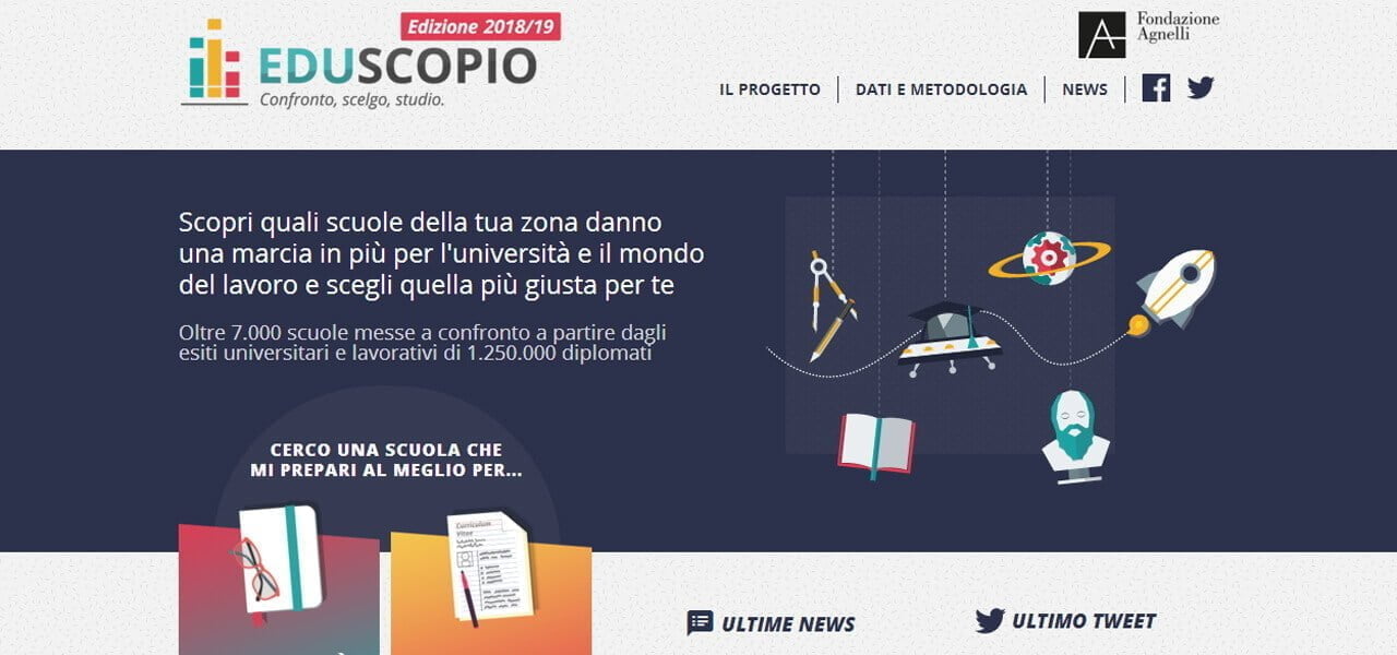 Eduscopio 2018. Andrea Gavosto, il direttore della Fondazione Agnelli, è colui che gestisce il progetto Eduscopio, che ha recentemente stilato la classifica dei migliori istituti scolastici d’Italia in merito alla loro formazione per il mondo del lavoro o per l’università. Gavosto ci tiene subito a precisare: «Eduscopio non è lo strumento adatto per dare un giudizio sul nostro sistema scolastico in generale, proprio perché non confronta scuole né indirizzi diversi, né tanto meno aree dove il contesto socio-economico è differente». Fra i dati analizzati dalla fondazione, anche la percentuale di bocciatura degli studenti: «Abbiamo individuato – dice a riguardo Gavosto – una correlazione leggermente positiva dell’andamento universitario proprio per gli studenti delle scuole più inclusive; un istituto che boccia e allontana non necessariamente dà buoni risultati». Ma per scegliere la scuola giusta, a volte non basta nemmeno Eduscopio: «Non c’è una ricetta giusta – conclude il direttore della Fondazione Agnelli – alla fine conta sempre quello che vuol fare il ragazzo o la ragazza, però molte scelte vengono ancora fatte per tradizione familiare e questo non porta sempre risultati». (aggiornamento di Davide Giancristofaro)