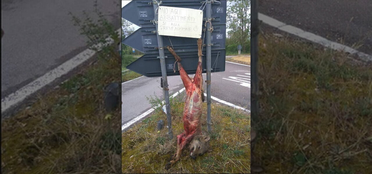 Lupo ucciso, scuoiato e appeso al cartello stradale. Foto shock, responsabile individuato col dna: denunciato con gravi accuse