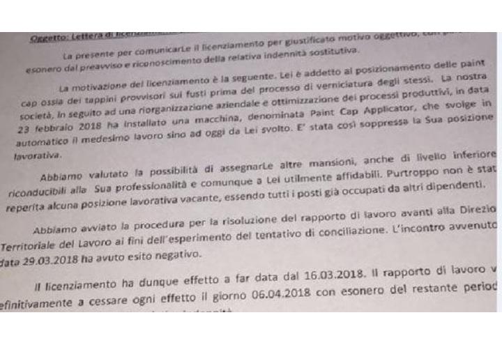 La notizia dell’operaio di una ditta di Melzo, licenziato dopo 30 anni perché sostituito da una macchina, ha fatto in breve tempo il giro del web. A sorprendere, non è tanto la motivazione che ha spinto l’azienda Grief Italia Spa a lasciare a casa il 61enne marocchino, quanto la freddezza e la mancanza di tatto utilizzata dalla stessa in questa occasione così delicata. Prima di tutto, il dipendente in questione è disabile, avendo perso una mano nel 1991. Secondariamente, è un operaio di vecchia data, lavora in quell’azienda da trent’anni, e di conseguenza è una persona su cui si può fare affidamento. Terzo, la mancanza di preavviso, visto che la lettera di licenziamento sarebbe giunta da un giorno all’altro, come un fulmine a ciel sereno. Ma leggiamo un altro passaggio significativo di questa famosa lettera «Abbiamo valutato la possibilità di assegnarle altre mansioni, anche di livello inferiore riconducibili alla sua professionalità e comunque a lei utilmente affidabili. Purtroppo non è stata reperita alcuna posizione lavorativa vacante, essendo tutti i posti già occupati da altri dipendenti». Quindi la conclusione, gelida: «Abbiamo avviato la proceduta per la risoluzione del rapporto di lavoro ai fini dell’esperimento del tentativo di conciliazione. L’incontro avvenuto in data 29/03/18 ha avuto esito negativo». (aggiornamento di Davide Giancristofaro)