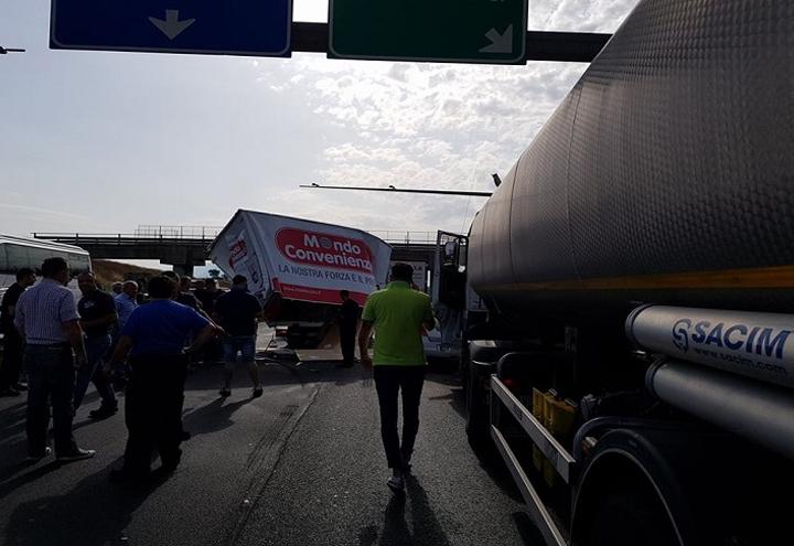 La coda ha superato il chilometro, ma rischia di aumentare con il passare delle ore. Nello scontro, come dicevamo, è rimasto coinvolto anche un furgoncino, un camion di Mondo Convenienza il cui carico di mobili è finito completamente sull’asfalto dopo essere stato sventrato. Nello scontro, distrutto anche il parabrezza del tir coinvolto. Difficile capire come siano andate esattamente le cose, anche se è evidente il tamponamento fra i due mezzi pesanti, con l’autista del camioncino che deve aver frenato improvvisamente dopo aver avvistato un pericolo davanti a se. Sul luogo sono giunti subito i soccorsi, nonché la polizia strada e i vigili del fuoco, oltre al personale stradale per ripulire la carreggiata dai molti detriti.