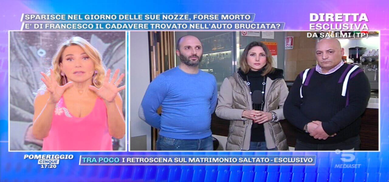 Del caso si è occupata oggi Barbara d’Urso durante Pomeriggio 5. Ha parlato Salvatore, un amico del mancato sposo: «Sono stato il primo ad arrivare in chiesa. Era sguarnita di fiori, mi sono fermato per capire se avevo sbagliato, poi è arrivato il fotografo che mi ha chiesto dove fosse Francesco». Così sono cominciate le ricerche. «Lui non rispondeva al telefono, poi sono riuscito a parlarci. Era molto preoccupato, piangeva… Era disperato. Mi ha detto di non avere soldi e di non poter fare brutta figura. Non aveva fiori né vestito. Lui mi ha salutato e ha chiuso la chiamata». Nel frattempo è stata avvisata la sposa: «Non era ancora arrivata, quindi l’abbiamo fermata, non l’abbiamo fatta arrivare in chiesa». L’amico di Francesco Ciaravolo lo ha richiamato: «Non voleva sentire ragioni. Io non volevo più sentirlo perché ero arrabbiato con lui». Poi ha spiegato che «potrebbe esserci ucciso». A Pomeriggio 5 è intervenuto anche Francesco, che lavora nel bar dove il giorno del matrimonio si è presentato Francesco Ciaravolo: «L’ho incontrato il giorno del matrimonio. Abbiamo chiacchierato, era tranquillo».